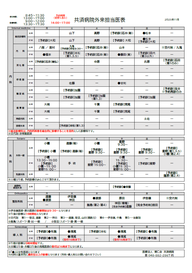 【11月医師診療担当表】